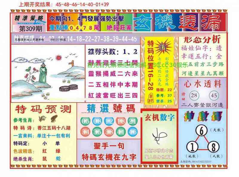 314期:曾道人精选/另简单玄机/另三句赢钱/双色特码诗/钻石玄机